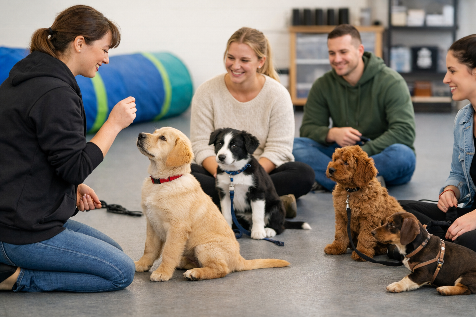 This allows puppies to progress at the right pace while owners learn exactly how to practise and reinforce skills at home.